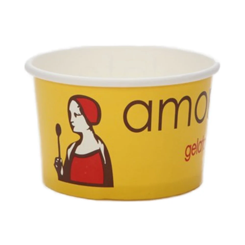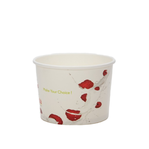 ถ้วยกระดาษใส่ไอศครีมแบบใช้แล้วทิ้งถ้วยไอศกรีมแบบพรีเมียมเป็นมิตรต่อสิ่งแวดล้อมพิมพ์โลโก้ได้ตามต้องการ