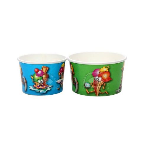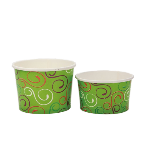 ถ้วยกระดาษใส่ไอศกรีมแบบใช้แล้วทิ้งเป็นมิตรต่อสิ่งแวดล้อมถ้วยใส่ไอศกรีมกันน้ำออกแบบได้ตามที่ต้องการ