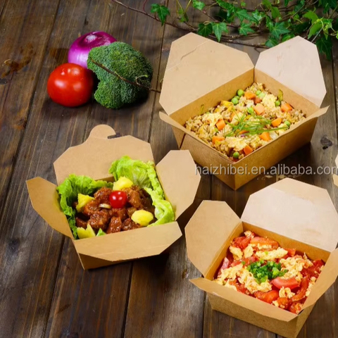 Recipientes De Alimentos Portátil Impermeável Descartável Atacado Corrugado Kraft Paper Lunch Box